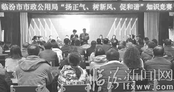 临汾新闻网讯 为进一步推动学习型单位建设,牢固树立社会主义核心价值观,弘扬社会主旋律,释放正能量,促使广大党员干部全面系统学习教育工作的常态化,近日,市政公用局在全系统开展了“扬正气、树新风、促和谐”知识竞赛活动。