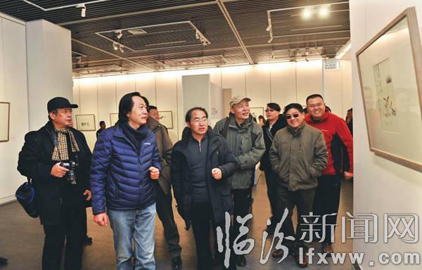 临汾新闻网讯 12月29日,山西师范大学美术学院院长李晓庵(左二)在为书画爱好者介绍画展情况。当日,主题为“水墨素心”李晓庵中国画小品展在晋城美术馆举办。此次展览共展出50余幅水墨淡雅的小品佳作,以常见的生活题材和传统笔墨为广大书画爱好者呈现了视觉盛宴,搭建了临汾和晋城的艺术交流平台。记者 闫锐鹏摄