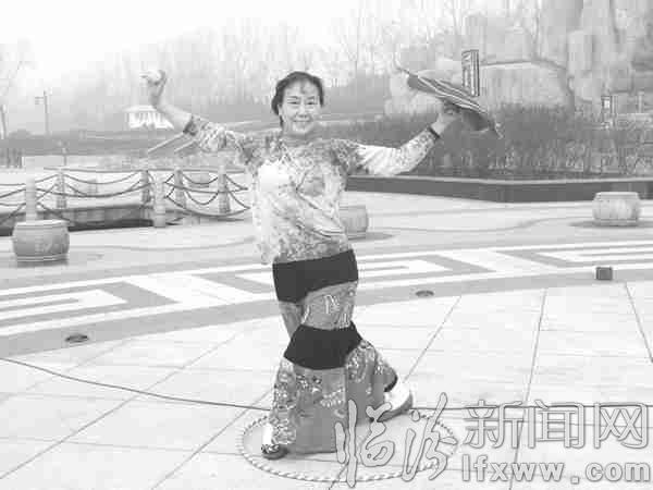 60岁的邱付霞是临北煤焦发运站的一名退休职工。2015年,邱付霞自编了一段炫舞串操,将呼啦圈、弹力球、二人转手绢、跳绳集其一身,让身体的每一个部位都“舞起来”。