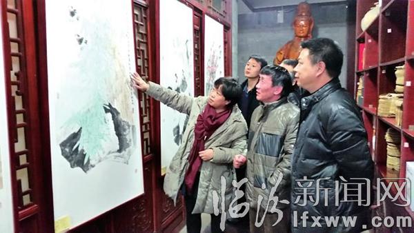 临汾新闻网讯 近日,以“高山流水”“寄情秦汉”为主题的2016年迎春书画展在古城公园秦汉胡同开幕。这次展览由尧都区文联主办,共展出13位作者的70余幅佳作,这是临汾书画界首次以微信好友群的形式开展的书画展览,旨在相互交流、共同进步。图为书画界朋友在品评画作。