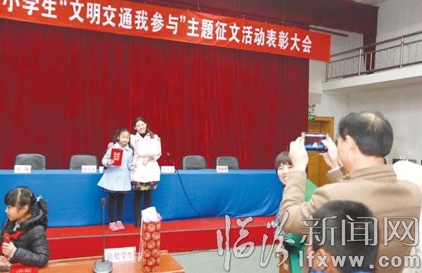 活动现场,市教育局、市交警支队、临汾晚报小记者团组委会的相关领导为20位获奖学生、18名优秀指导教师和13个优秀组织单位颁发了荣誉。一等奖获奖者赵紫彤激动地说:感谢这次征文活动,让我们知道了交通安全的重要性。让我们小手拉大手,一起播撒平安的种子。”