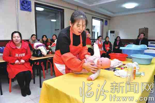 临汾新闻网讯 日前,第二届“晋嫂”技能大赛临汾赛区举行了育婴师、保洁员以及养老护理员三大类的技能竞赛。图为参赛选手在进行育婴师技能考核。