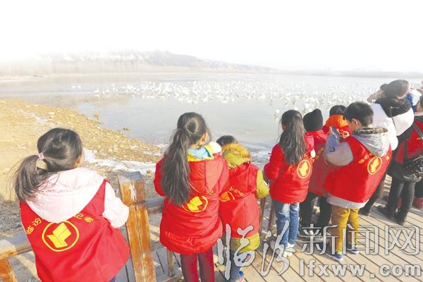 小记者们近距离观赏这些天鹅,岸边还有众多摄影爱好者端着“长枪短炮”拍摄。漂亮美丽的白天鹅时而飞翔水面,时而引项高歌,彼此追逐嬉闹,吸引了小记者们的眼球,拿出相机互相拍照留念。
