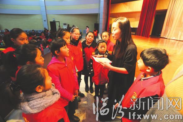 1月28日下午,小记者合唱团的成员们欢聚临汾日报社会议室,他们在这里首次“亮嗓”。专业声乐老师乔雅林根据面试结果划分出不同的声部,并让他们跟随自己的手势齐声唱起《中国小记者之歌》。