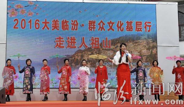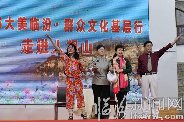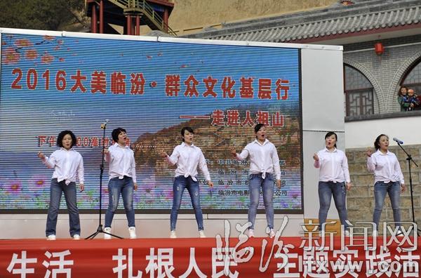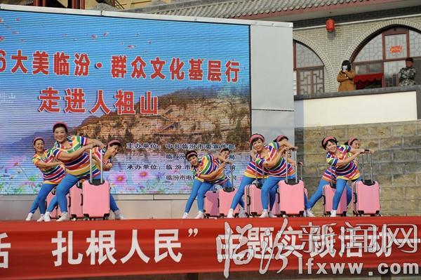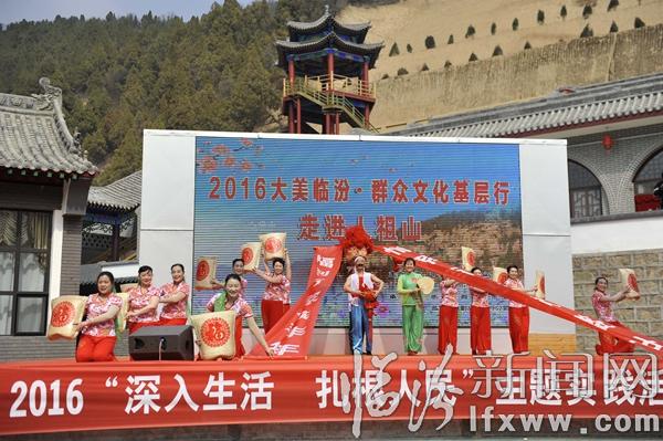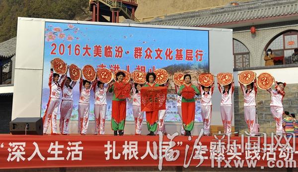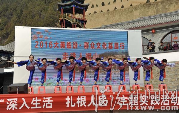 据临汾市群众艺术馆副馆长乔炯介绍,大美临汾,群众文化基层行”活动自2013年启动以来,几年来,演出团队先后走进乡村、社区、广场、敬老院、军营、厂矿等地,义务演出60余场,将一场场精彩的文艺演出送到大家面前,得到了群众和社会各界的一致好评。此次走进景区活动,是大美临汾,群众文化基层行活动更好的延伸,以精彩的文化演出更好的让游客了解临汾、认识临汾,丰富了景区文化内涵、也提升了景区活力和知名度。