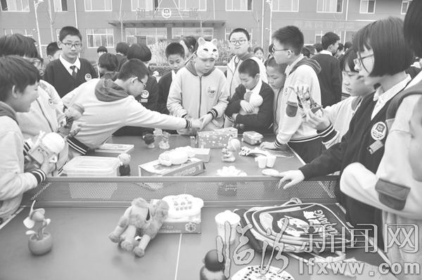 当天下午,学生们聚集在操场,就地取材,把义卖物品都摆在乒乓球案上,课外书籍、玩具、体育用品、剪纸作品……可谓应有尽有。各班学生也都精心制作了宣传版面,爱心超市”奉献爱心传递美德”爱心淘宝小屋”爱心小铺160”转手遇到爱”等充满浓浓爱心的标语让义卖现场气氛更加热烈。