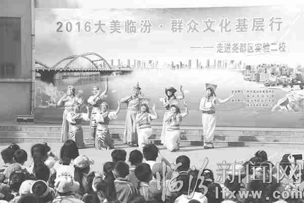 临汾新闻网讯 (记者 郭秀婷 张森辉)梦圆中华、和谐大家庭、我的梦·少年梦·中国梦……4月1日下午,由市委宣传部、市文化局主办,市群众艺术馆、市电影放映公司承办的“2016大美临汾·群众文化基层行”走进尧都区第二实验小学,为该校1200余名师生上了一堂特别的“爱国主义教育课”。