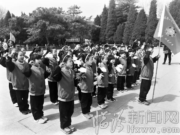 临汾新闻网讯 4月2日上午,市解放路小学一年级(6)班的学生们来到尧庙烈士陵园开展了“铭记历史,缅怀先烈”的社会实践活动。学生们在纪念碑前举行了庄严的宣誓仪式,并敬献小白花,缅怀为挽救危亡而壮烈牺牲的无数革命烈士。(安月琦)