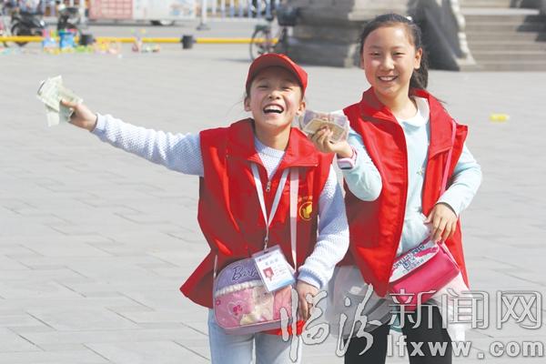 相比王紫谦的幸运,小记者赵倩宇和吉康瑜可谓出师不利,连续半小时一无所获。他们克服了最初的羞涩,改变了漫无目的的套路,以5角钱的“低价”售出了第一份报纸。初战告捷,她们激动不已:“赚钱真的好难,我们要体谅家长的辛苦,花钱时不能大手大脚。”