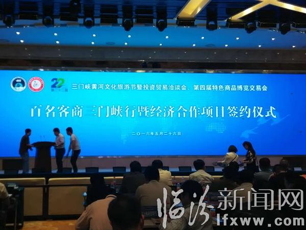 临汾新闻网讯(记者 席沛钊 吉政)5月26日下午,第二十二届三门峡黄河文化旅游节暨投资贸易洽谈会、第四届特色商品博览交易会的重头戏-百名客商三门峡行暨经济合作项目签约仪式在文博城会展中心多功能厅举行,各位嘉宾、客商济济一堂,相互交流,磋商洽谈,共话合作。