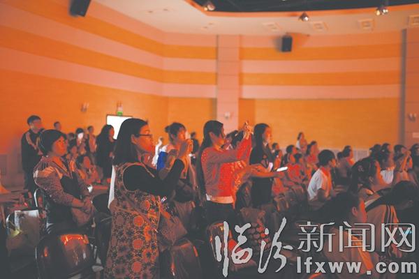 原来这是来自临汾晚报小记者团东关小学校园小记者站的代表们,正在同学校的8位老师一起进行诗朗诵《中国梦》的最后排练。