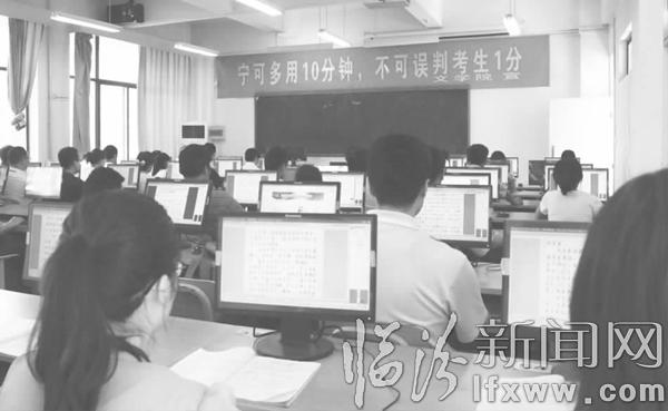 老师们正在用电脑批阅高考试卷。(资料图片)