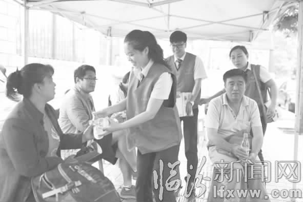 临汾新闻网讯 6月7日,在临汾平阳中学考点外,交通银行临汾分行营业部的志愿者们开展了“爱心助考”活动。他们搭起遮阳棚,为陪考的家长送上饮用水,此举赢得了考生家长的好评。