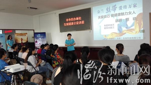 临汾新闻网讯 6月28日上午,辛寺街办事处联合水肤兰(北京)生物科技有限公司举办了一场生殖健康知识讲座。特邀水肤兰金牌讲师蔡晓女士主讲,为提高广大女性的自我保健意识,以最佳状态进行生活和学习,做一名健康快乐、积极向上的阳光女性得到了科普,受到广大女性的热烈欢迎。