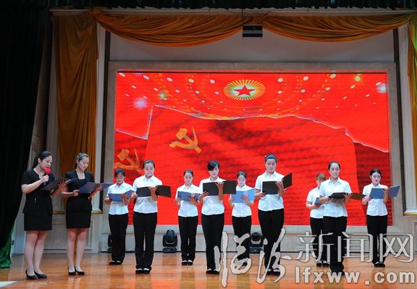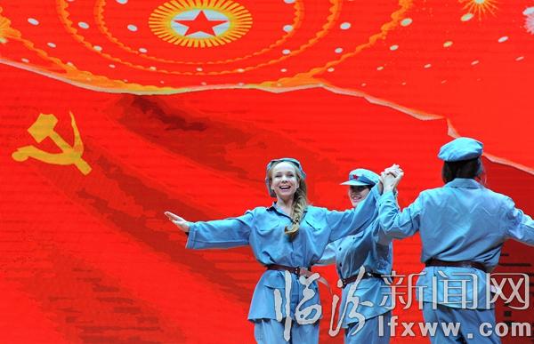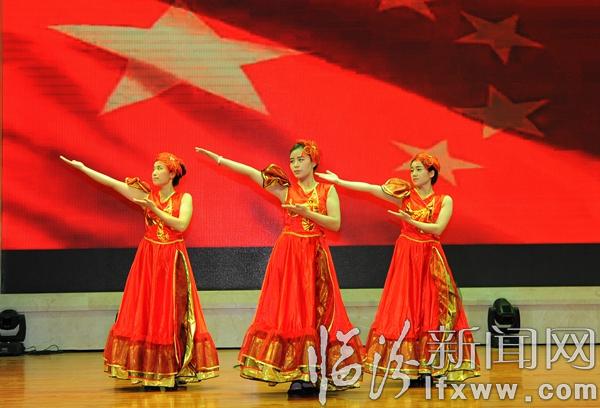 临汾新闻网讯 6月28日,在我市华尧集团,员工在表演舞蹈《红色娘子军》。当日,山西华尧游乐园有限公司联合党支部“庆七一,颂党恩”主题活动举办,通过重温入党誓词、红色歌曲演唱以及联合党支部爱心基金发放等形式,更好的让员工立足工作岗位,脚踏实地,服务于当地的经济建设。