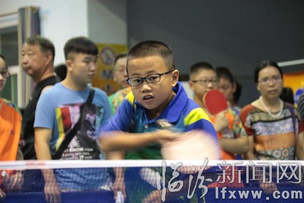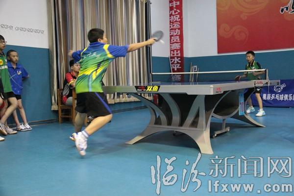 临汾新闻网讯 7月9日,在我市星辰乒乓球俱乐部,三川乒乓球队的队员在比赛中发球。当日,我市2016年“星辰杯”少儿乒乓球邀请赛举办,旨在进一步加强全市少儿乒乓球梯队建设,提高后备人才的竞技水平,发现更多的青少年乒乓球人才。 记者 闫锐鹏 摄