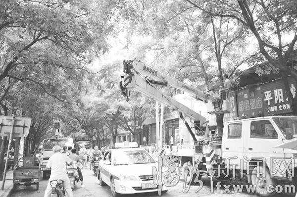 临汾新闻网讯 7月15日,市绿化队组织员工在财神楼巷内对绿化树木进行修剪。这次修剪除了可以美化环境、消除交通安全隐患外,还有利于树木来年开春枝叶更加浓郁、茂盛。