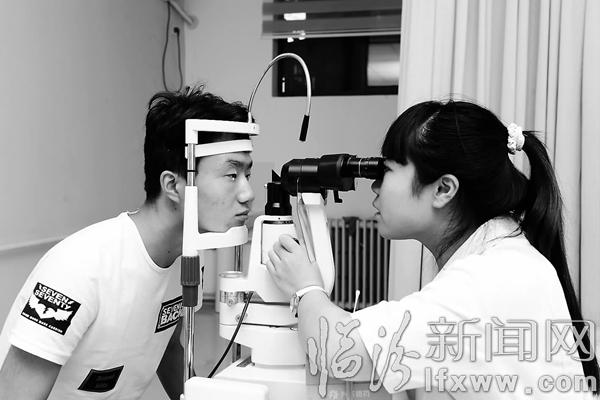 临汾新闻网讯 7月18日,在我市同仁眼科医院,医务人员在为患者检查视力。日前,记者在我市同仁眼科医院看到,许多学生利用暑假时间参加该院举办的“爱眼课堂”中,他们在这里矫正视力,掌握爱眼护眼知识,迎接新学期的到来。