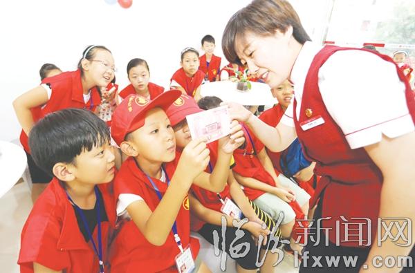 临汾新闻网讯 “新版百元纸币正面的100字体,会通过不同的角度变换颜色,使防伪技术大大提高。”7月23日上午,临汾晚报40余名小记者来到中信银行临汾分行,参加“小小理财家”职业日活动。小记者们参观了与金融服务密切相关的业务办理区和自助服务区,了解了业务办理的具体流程。小记者们通过“如何辨别人民币的真伪”如何管理好零用钱”知识讲座,在玩乐中轻松掌握理财知识,从小培养理财观念。