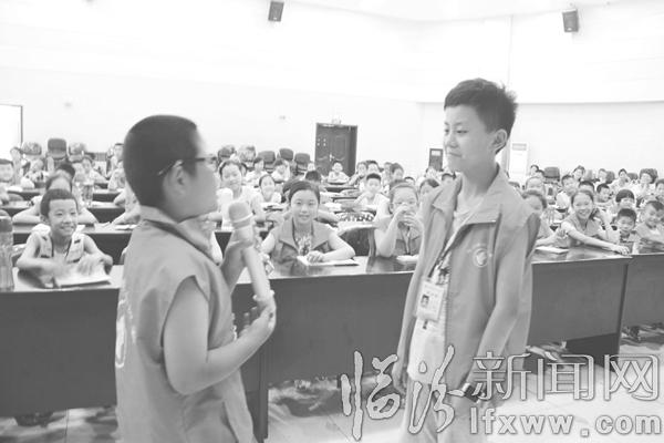 “新闻就是新近发生的事实的报道,这是陆定一在《我们对于新闻学的基本观点》一文中提出的。”赵老师开篇明义,首先给小记者讲解了什么是新闻、新闻的五个W、新闻最大的特点等内容,并教小记者们如何采访:“我们采访时要有礼貌,先介绍自己,让被采访者知道自己是哪家媒体的记者,提前准备的问题要和被采访者所从事的工作或所知晓的事物有关,否则,就是一次失败的、不恰当的采访。”针对小记者在采访时往往不知道该问什么的状况,赵老师深入浅出、声情并茂地讲道:采访时,在没有得到你想要的答案时,我们要学会追问,有条理的追问能使我们的采访更为丰富,写稿时才会有内容。当然,涉及到个人隐私或者单位秘密的问题是不能问的……”这个环节,赵老师让几个小记者分组上台,扮演记者与被采访对象,一个提问,一个回复,在“实战操练”中指出他们各自的优点和不足,让小记者们直观地感受、体会应该如何提问,如何继续话题才能采到自己需要的东西,才能写出一篇“有料”的新闻稿件。