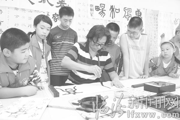 临汾新闻网讯 世界上没有哪个民族像中华民族一样,把自己的文字当作艺术去推崇。书法是汉字特有的传统艺术,被誉为“无言的诗,无行的舞,无图的画,无声的乐……”8月10日,临汾晚报小记者团的40余名小记者来到市书法家协会书法培训中心,了解和学习书法的相关知识。