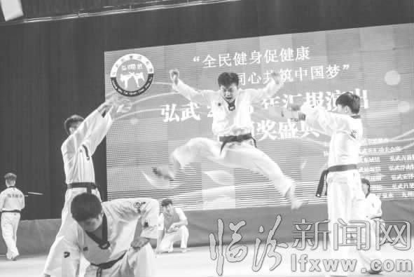 临汾新闻网讯 8月15日,临汾弘武跆拳道馆的学员在市影剧院通过武术表演的形式倡导全民健身,参加汇演的学员年龄最小的4岁,最大的17岁。活动负责人介绍,武术是我国文化的瑰宝,蕴含着中华民族自强不息、积极进取的民族精神,希望在全社会形成崇尚健身、参与锻炼、追求健康的良好氛围。