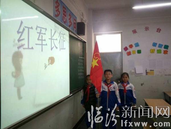 班会开始后,伴随着班长郑重庄严地出旗仪式,孩子们一一讲解着长征的意义、长征的路线以及长征的开端,他们稚嫩的声音顿时将班内的气氛引爆开来,血战湘西、巧渡金沙江、大渡铁锁桥、爬雪山、过草地等场面你一言我一语好不热闹,孩子们纷纷发言、各抒己见,生怕轮不到自己。原来孩子们从课外了解到的东西还真不少,为我这些优秀的孩子们点赞!