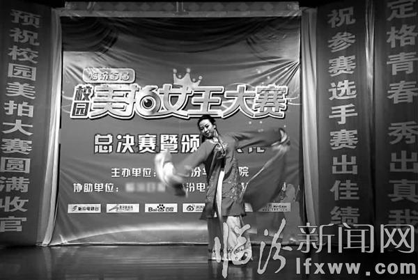 临汾新闻网讯 日前,在我市首届校园美拍女王大赛上,参赛选手在进行才艺展示。由临汾华北医院主办的临汾首届校园美拍女王大赛,通过网络评选、才艺展示等环节,很好地展示了大学生的青春活力,在绽放自我的同时,也丰富了他们的校园文化生活。 记者 闫锐鹏 摄