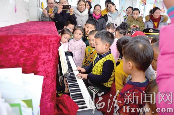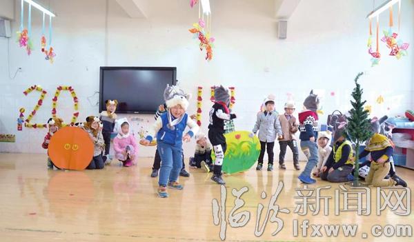 临汾新闻网讯 元旦前夕,市幼儿园以班级为单位组织“庆元旦”文艺活动,各班都精心排演了优美的文艺节目,小演员们个个精神饱满。他们通过表演舞蹈、唱歌、快板、弹奏乐器等形式多样的节目,展示自己的成长和进步。孩子们那一张张天真可爱的笑脸,为寒冷的冬天送来阵阵暖意,将新年的喜庆传递给在场的每一位观众。图为该园大一班小朋友们正在表演节目。