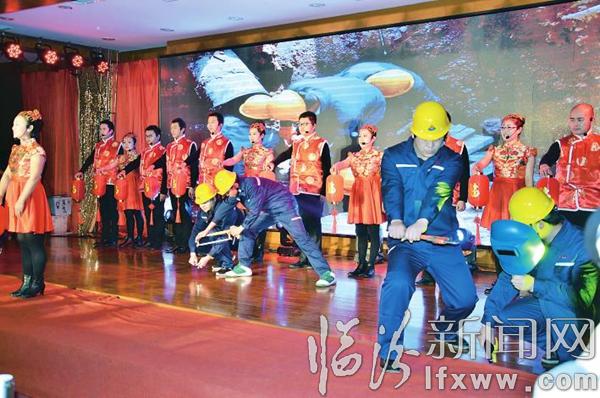 “过年过节不间断、随时待命把活干;毫不懈怠树典型、燃烧青春铸辉煌……目标明确思路清、鼓足干劲不能松;坚定信心永向前,拭目以待一七年。”抢修员、巡检员、调压员们穿上喜庆的服装,踏着明快的节奏,用一场精彩的音乐剧《临燃风采》将整台文艺汇演推向高潮。音乐剧中,职工们用铿锵的脚步、振奋的话语,记录了临燃人在服务城市燃气供应中踌躇满志、努力开拓的印迹,留下了临燃人脚踏实地、兢兢业业的足迹,更展示了他们不忘初心、继续前行的十足干劲。