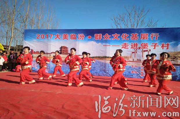 临汾新闻网讯(记者 安月琦 实习生 宁智豪)2017年2月9日下午3点,“大美临汾”群众文化基层行走进我市尧都区堡子村。与以往的演出不同,此次的活动不仅有群艺馆艺术团队的精彩演出,还带动了邻村的舞蹈健身队积极参与,实现了从“送文化”到“种文化”的转变,群艺馆和乡(镇)的演员们共同在正月新春之际为乡亲百姓带来了一台热闹非凡的演出,赢得了在场观众的阵阵喝彩。