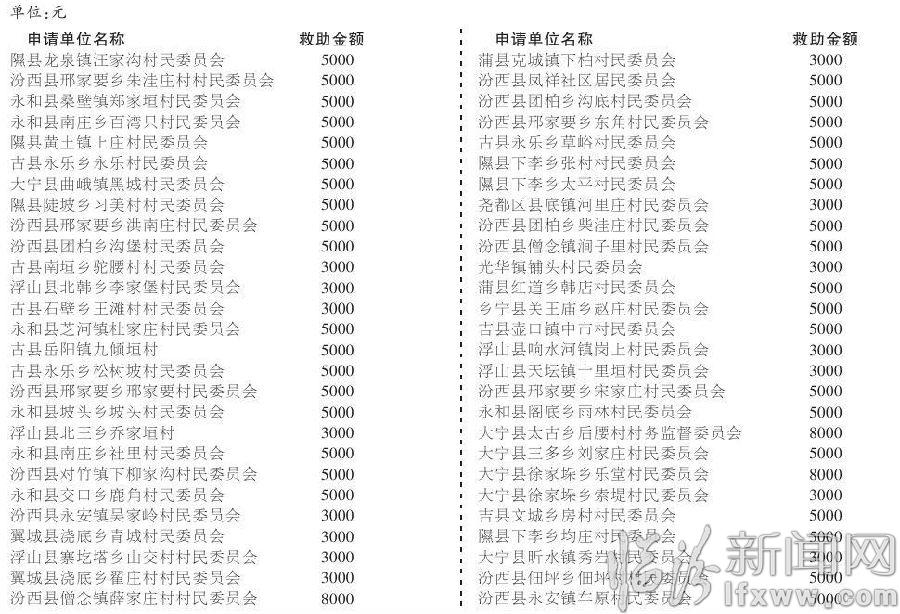 临汾市2016送温暖献爱心”捐助款使用情况统计