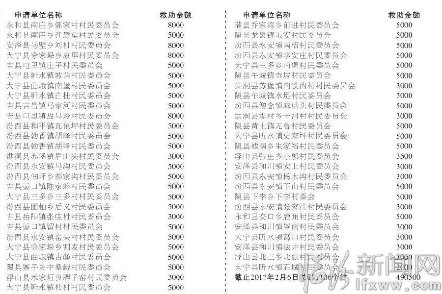 临汾市2016送温暖献爱心”捐助款接收情况统计