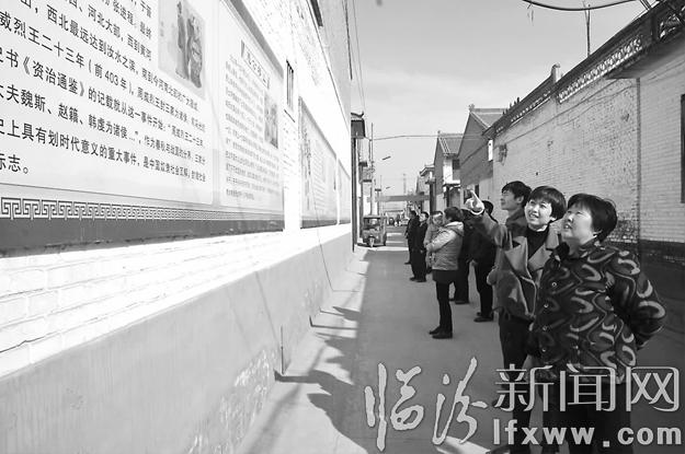 临汾新闻网讯 近日,在曲沃县乐昌镇南吉村,群众正在诵读该村文化墙上的成语典故。该镇以“社会主义核心价值观”、中国梦”、两学一做”、晋国成语典故”、新二十四孝”、弟子规”及乡风村容,和睦家庭文明建设为内容,制作文化墙版面470余块,在丰富农村群众文化生活的同时,极大地推动了基层精神文明的建设。