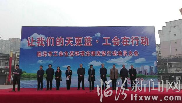 临汾新闻网讯(记者 卫红丽) 3月17日上午,全市工会系统生态环境治理攻坚行动动员大会在临汾市鼓楼广场召开。各县(市、区)工会主席,市直各单位工会主席以及各界群众参加动员大会。