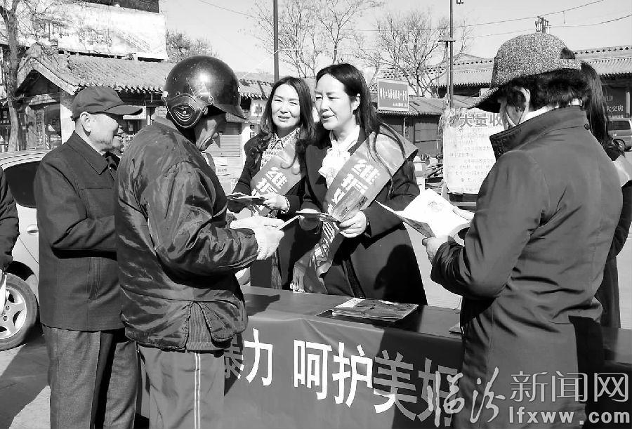 临汾新闻网讯 近日,霍州市开展了以“拒绝家庭暴力,呵护美好家庭”为主题的反家庭暴力普法宣传活动。该市妇联与12个乡镇、街道办事处妇联工作人员同时走上街头,通过设立法律咨询台、悬挂横幅、深入商场店铺发放宣传资料等方式,大力宣传《中华人民共和国反家庭暴力法》《婚姻法》《继承法》《妇女权益保护法》《法律援助条例》中涉及反家庭暴力、优生优育、平等就业等与妇女生活密切相关的法律法规知识,深受妇女们好评。 记者 范韶华 摄