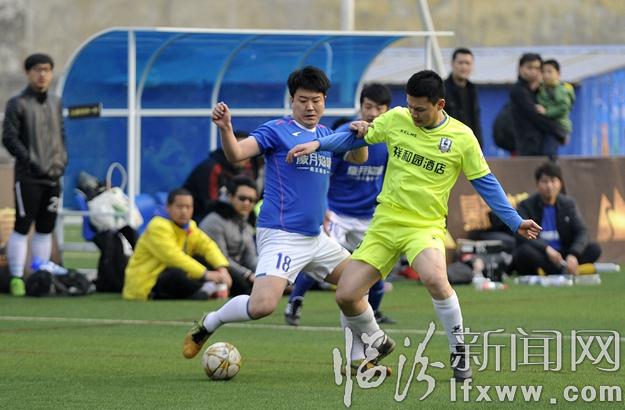 临汾新闻网讯 3月17日,在临汾市“尧王杯”五人制足球争霸赛上,参赛队员在球场上角逐。当日,临汾市“尧王杯”五人制足球争霸赛在临汾市体育场举行,来自临汾市足球协会的30余支足球队进行为期一周的精彩对决。