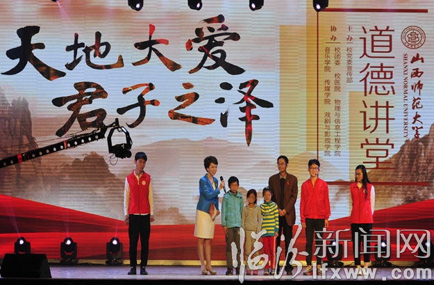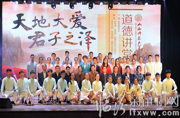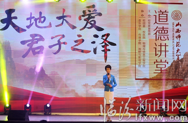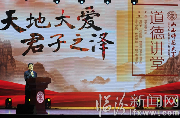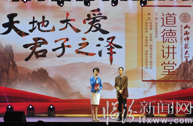 临汾新闻网讯 (记者 闫锐鹏)典型人物现场讲述,大学校长亲自授课,千余师生共同聆听……4月20日晚,山西师范大学举办“天地大爱,君子之泽”道德讲堂。通过一堂特殊的思政课,弘扬中华民族传统美德,引领师生践行社会主义核心价值观。