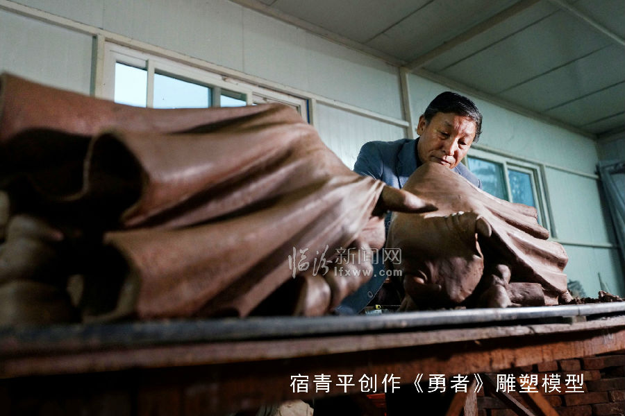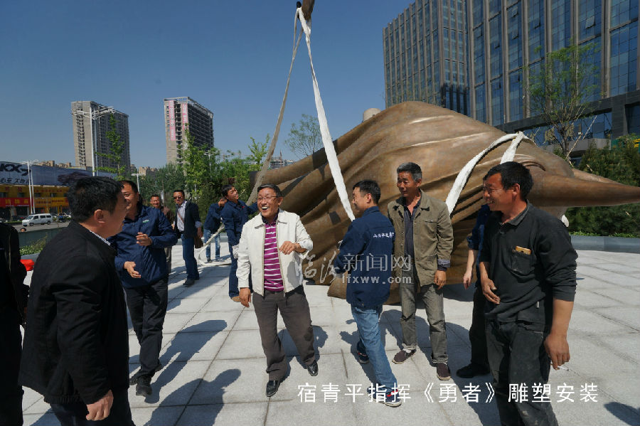 2016年,面对鼓楼大街拓宽改造的巨大挑战,宿青平目睹全体建设者和全市人民的无私奉献,触景生情,创作了展现临汾精神的《勇者》雕塑,成为鼓楼大街又一艺术精品。这组雕塑安装在鼓楼北大街与河汾路交汇处。
