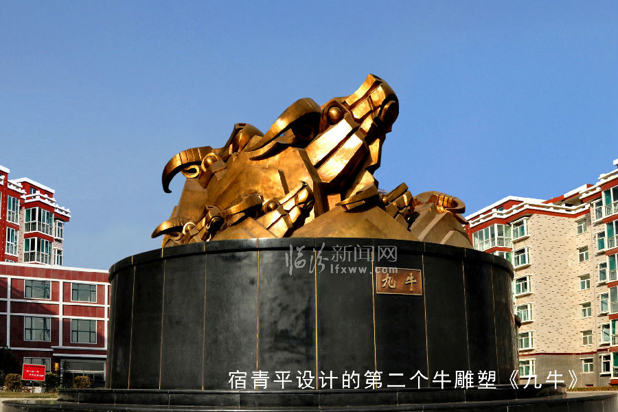 2009年,继《脊梁》雕塑之后,宿青平又创作了《九牛》铜雕,寓意九牛爬坡,个个出力,象征临汾人民团结进取的奋斗精神,这尊雕塑安装在教授花园。