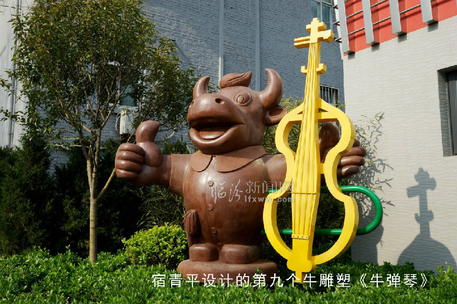 2016年,宿青平以卡通艺术形式,设计了一件名为《牛弹琴》的雕塑,借“对牛弹琴”的成语反其意而用之,塑造了一个聪明可爱的牛形象。这件雕塑安放在鼓楼南大街一座公厕旁。
