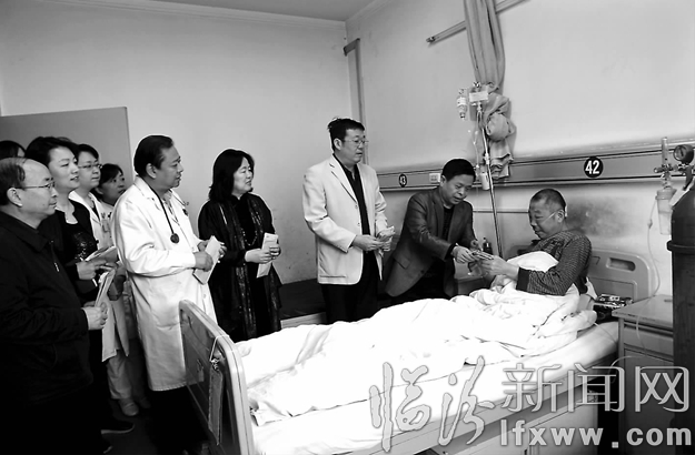 临汾新闻网讯 4月25日,市卫计委、市第三人民医院相关领导将35720元的爱心款交到了该院接受治疗的职工翟满喜手中。此举充分体现了该院全体职工“一方有难、八方支援”的集体主义精神,给患病中的翟满喜以极大的精神鼓舞。