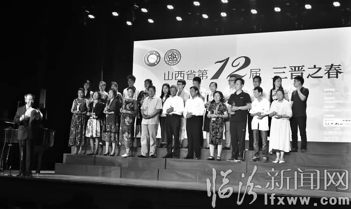 临汾新闻网讯 5月22日,山西省第十二届“三晋之春”合唱比赛在山西师范大学举行颁奖仪式。本次比赛由省文化厅、省教育厅主办,省合唱协会、山西师范大学音乐学院承办。来自全省各地共计几百支合唱团参加了预赛,70余支进入决赛,山西师范大学爱乐合唱团、太原职工青松合唱团等二十个合唱团获得“春花”金奖,190余名文化志愿者受到表彰。