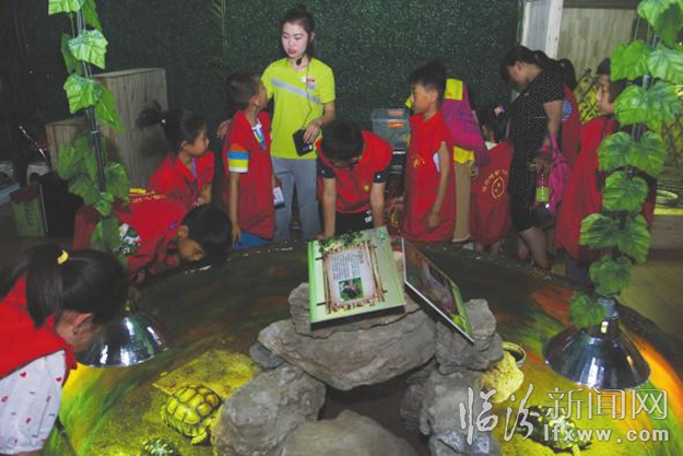 告别科技馆,小记者仍意犹未尽地讨论着那些难以想象的科学实验。直到“两栖爬虫馆”映入眼帘,他们才回过神来,一个个兴奋地跑去观看馆里的蜥蜴、变色龙、乌龟等,还有令他们望而生畏的蟒蛇。