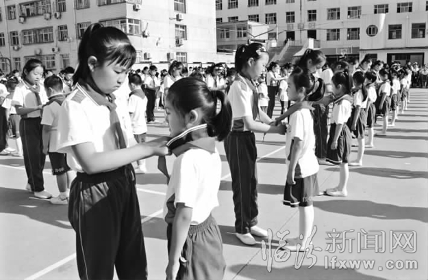临汾新闻网讯 近日,曲沃县实验小学举行了2017年庆“六一”一年级新生入队仪式,老队员代表为463名一年级新队员戴上了鲜艳的红领巾。