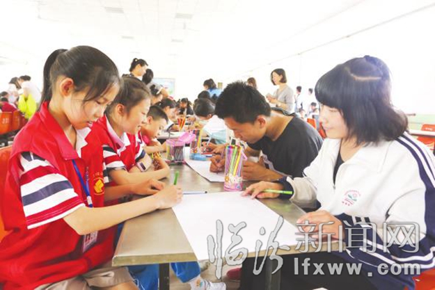 小记者吴宇丹宁迅速开动脑筋,很快就确定了主题。她和搭档姐姐交流过后得知,姐姐并不擅长绘画,但愿意给她打下手。吴宇丹宁立即铺开白纸,将自己对姐姐的美好祝愿诉诸笔端,一双“比心”的手渐渐浮现。她开心地说:一只是我的手,一只是姐姐的手,我们共同托举起爱心,让友谊常驻。”另一边,10岁的小记者张珂瑞与19岁的哥哥强强也忙得不亦乐乎。虽然有着“最大年龄差”,但二人沟通无障碍。“说”到兴奋处,二人捧腹大笑。“这幅画由两幅图构成,我们分别描绘出自己的童年趣事,共同记录欢乐的时光。”张珂瑞在画上写下,虽然你失去了听力,但你的心更明亮。”“我们的画中,有漂亮的鸟儿迎着大大的太阳在飞,寓意为自由地冲向梦想。”小记者郭静雯和姐姐珍珍描绘着心底的“小秘密”。珍珍十分喜欢眼前这位小妹妹,并大方地与她分享自己近年来的画作,期望自己和妹妹都能坚持不懈,在梦想的天空自由翱翔。