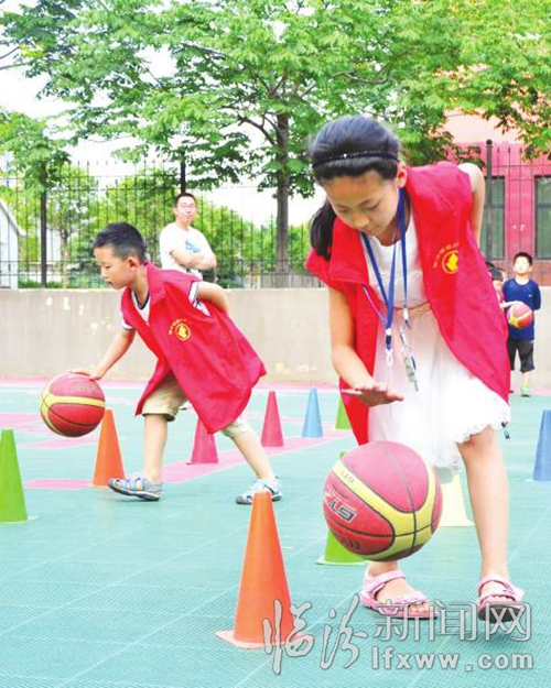 经过短时间的磨合,篮球渐渐听话了,小记者刚松了一口气,王震又提高了游戏的难度,让他们挑战行进间运球。跟随教练的步伐,听从他的指挥,小记者找到了窍门,在摆满障碍物的“小路”上来回穿梭。这令他们兴奋不已,纷纷表示:篮球太好玩了,长大以后,我们也要当灌篮高手。”“我们要让家中被遗忘的篮球重新发挥作用,既能锻炼身体,还能培养耐心、自信心及克服困难的勇气。”小记者郑嘉和、郑嘉乐兄妹兴致勃勃地说,这次活动还让我们切身体会到坚持就是胜利。” 记者李静 祁欣