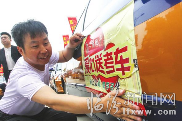 “我今天一早就把车收拾整洁,参加‘爱心助考’的启动仪式。