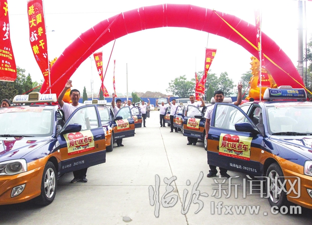 临汾新闻网讯 高考即将到来,为了给广大考生开辟一条快捷、便利、温馨的绿色通道,6月6日,我市第十届“爱心助考”大型公益活动正式启动。活动现场,出租车整齐列队,每辆出租车都在前车身贴上了“爱心助考车”的标识,以方便考生识别。