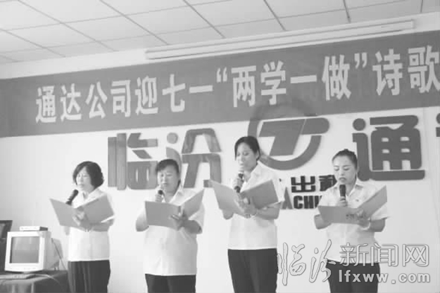 临汾新闻网讯 值此中国共产党成立96周年之际,6月23日,临汾通达出租汽车公司开展了“庆七一、颂党恩、两学一做”诗歌朗诵活动。